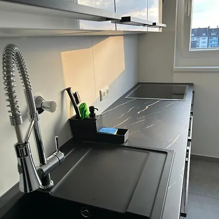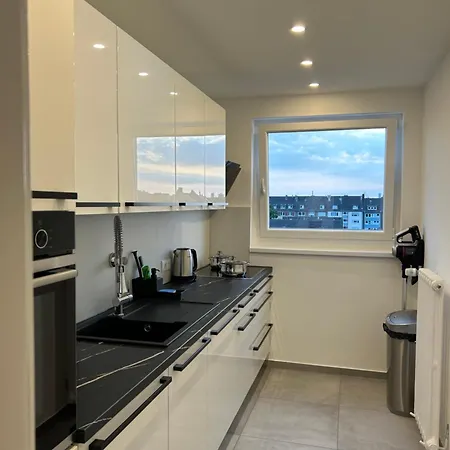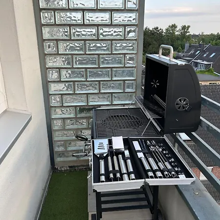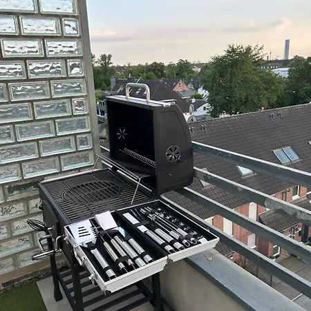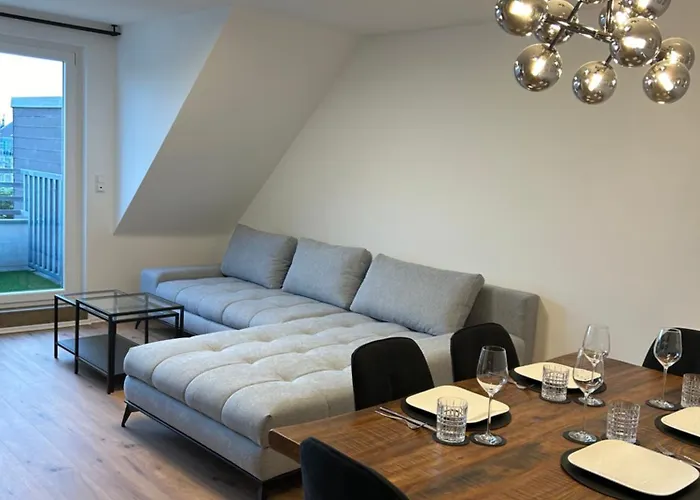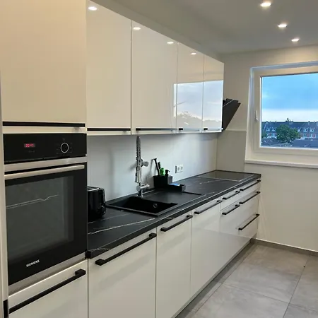 The apartment lies in the Rath district, approximately a 15-minute drive from St. Peter und Paul Catholic Church. The city center is just 3.2 miles away and Dusseldorf airport is 7 miles from this apartment.
